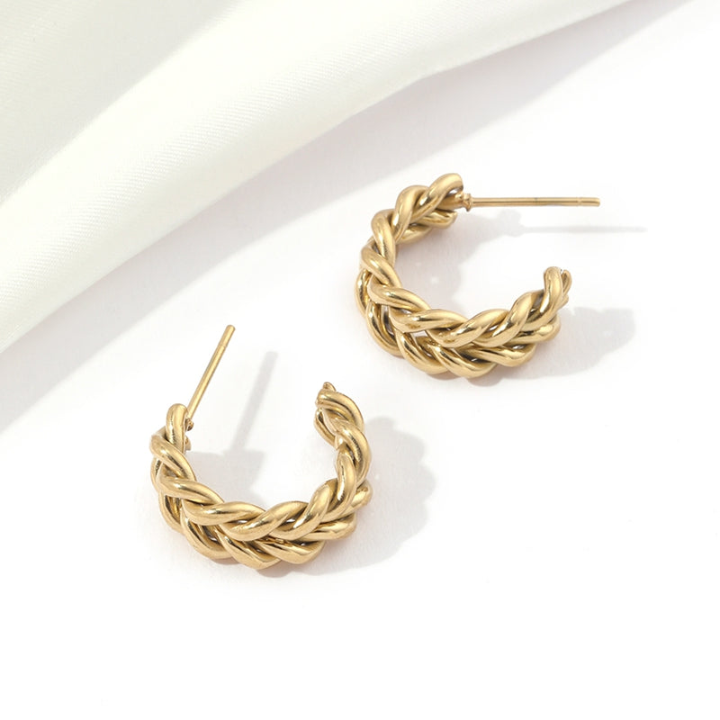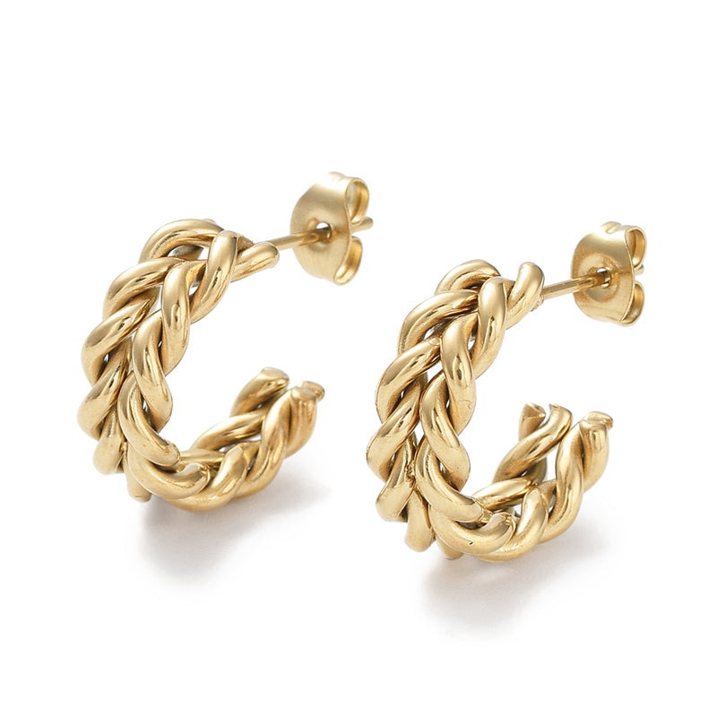 Estos pendientes de medio aro combinan un diseño redondo elaborado en acero inoxidable 201 con un acabado dorado refinado. Sus pasadores, fabricados en acero inoxidable 304, garantizan una sujeción segura y duradera. Con medidas de 21x6 mm, aportan un detalle elegante y sofisticado, ideal para realzar cualquier conjunto con discreción y estilo.