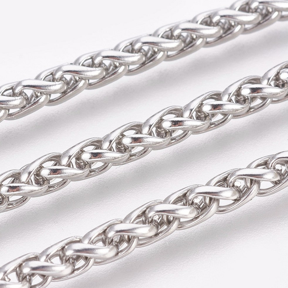 La pulsera cadena de trigo plateado ofrece una combinación única de estilo y resistencia. Fabricada en acero inoxidable 304, esta pulsera es resistente al deslustre, garantizando un brillo duradero. Su cierre de langosta asegura un ajuste firme y cómodo. Con una longitud de 22 cm y un grosor de 4 mm, es el accesorio perfecto para destacar en cualquier ocasión, aportando elegancia y confianza a tu estilo diario.